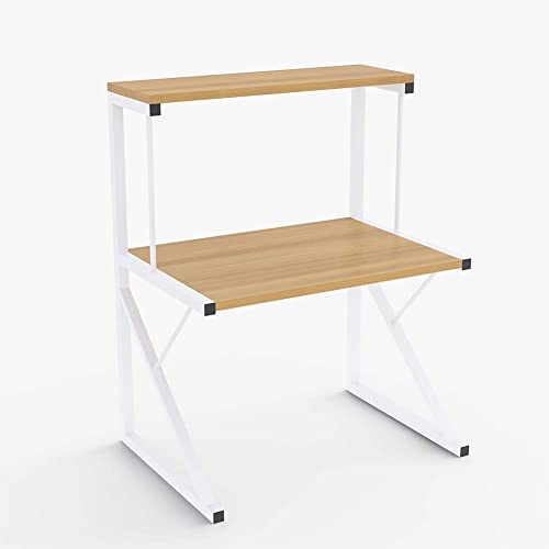 BAKAJI Scaffalatura Mobile Scaffale Porta Spezie Microonde Struttura in Metallo con 2 Ripiani Mensole in Legno Organizer Mensola Porta Utensili Strumenti Cucina Design Moderno (Beige)