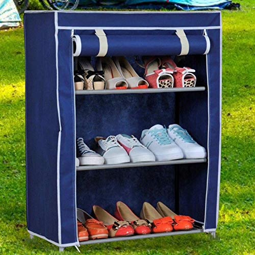 BAKAJI Scarpiera Armadio Salvaspazio 3 Ripiani 60x30x75cm Scaffale Porta Scarpe Struttura Metallo e Rivestimento in Tessuto TNT Impermeabile con Chiusura Zip Antipolvere (Blu)