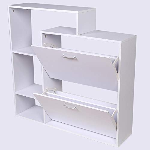 BAKAJI Scarpiera Portascarpe Salvaspazio Slim con Scaffale Libreria 4 Ripiani in Legno MDF 2 Ante a Ribalta E Doppia Profondita' Dimensioni 102 x 25 x 98 cm Design Moderno (Bianco)