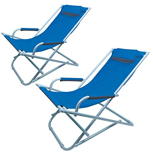 BAKAJI Sdraio Spiaggina Prendisole Dondolino Pieghevole Salvaspazio Struttura in Acciaio e Tessuto Oxford Imperbeabile con Poggiatesta Imbottito per Mare Spiaggia Piscina Relax (Blu)
