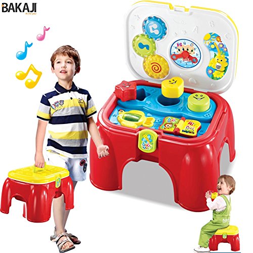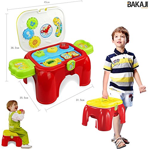 BAKAJI Sgabello con Formine ad Incastro Luci e Suoni Sediolina Giocattolo Portatile Gioco per Bambini Richiudibile