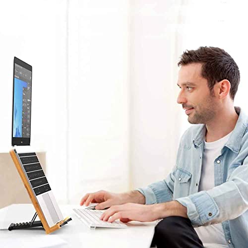 BAKAJI Supporto per Libri da Cucina e Tablet Leggio per Ricettario Libro Ricette in Legno Inclinazione Regolabile in 6 Posizioni Base in Plastica Antiscivolo e Alette Pieghevole Salvaspazio