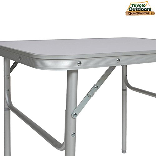 BAKAJI Tavolo Camper Campeggio Picnic Struttura Alluminio Piano in Formica Piedini regolabili in 2 Altezze 25/50cm Pieghevole a valigetta per spiaggia o giardino (60 x 45 x 50 cm)