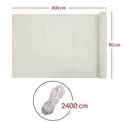 BAKAJI Telo Copertura Frangivista Frangivento per Ringhiera Protezione Balcone Dimensione 600 x 90 cm in Tessuto PVC Aggancio ad Occhielli Corda 24mt Inclusa (Beige)