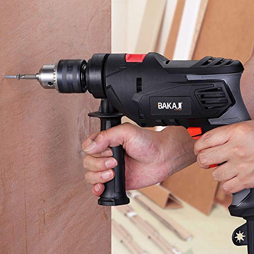 Bakaji Trapano Elettrico a Percussione Potenza 900W Velocita Regolabile 0-3000rpm Mandrino 13mm con Chiavino Funzione Foratura e Martello con Manico Ausiliario e Misuratore di profondità