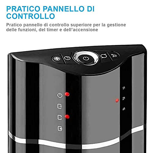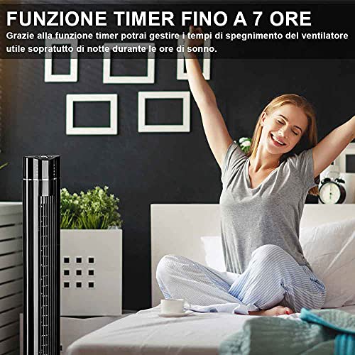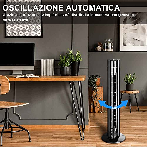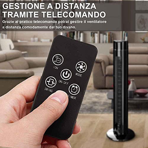 BAKAJI Ventilatore a Torre Colonna XL Oscillazione Automatica Potenza 60 W Altezza 107 cm con 3 Velocità Funzione Ionizzatore Purificatore Aria Timer 7 Ore Telecomando Design Moderno Nero