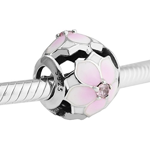 BAKCCI - Charm in argento 925 con fiore di magnolia, per braccialetti Pandora