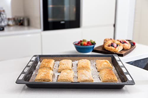 Resistente al calore fino a 260 gradi C. Sicuro per l'uso in microonde, piastre di cottura a gas, forno elettrico e a combustibile solido. Disclaimer: se messo in un forno o in una friggitrice ad aria, evitare il contatto diretto con gli elementi in quanto ciò potrebbe causare danni al rivestimento.