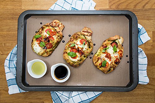 La fodera per cottura e cottura multigrado Bake-O-Glide può essere semplicemente tagliata a misura e collocata nella teglia da forno o da cucina per essere riutilizzata centinaia, se non migliaia di volte. Un foglio per tutte le tue esigenze di cottura e cottura, basta semplicemente lavare in acqua tiepida e sapone o in lavastoviglie e riutilizzarlo. La nostra fodera per cucinare ti farà risparmiare denaro, tempo e disordine in cucina. Un foglio fa quello che fanno centinaia di pezzi di pergamena.