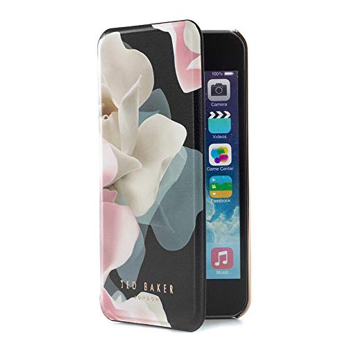 Ted Baker iPhone SE (2016) / 5S Case - Luxury Folio Case/Cover in Flower Design for Women with Built-in Interior Mirror for The Apple iPhone SE and iPhone 5S - Porcelain Rose - Black
