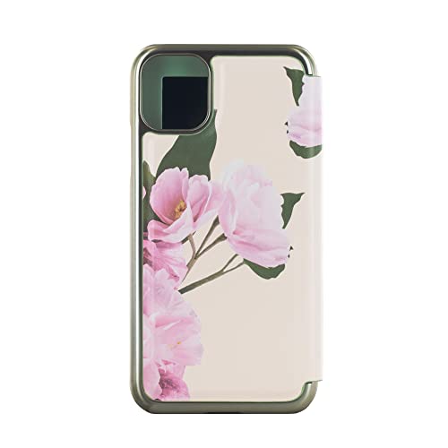 Ted Baker LIRIO Cream Flower Placement Mirror Folio Phone Case for iPhone 11 Green Gold Shell