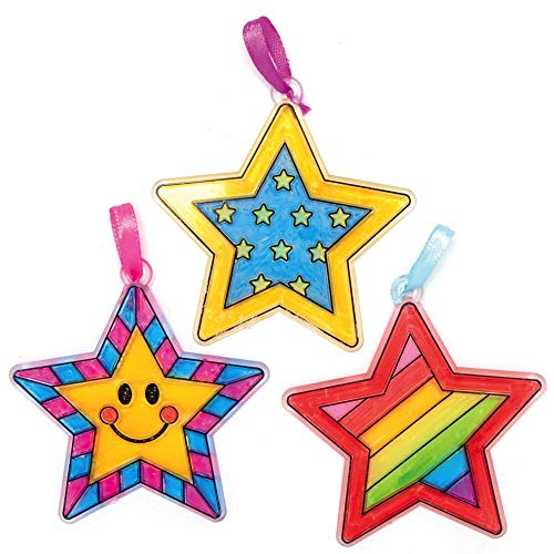 Kit artigianali per bambini: Decorazioni in acrilico trasparente effetto vetro colorato da appendere a forma di stella da appendere in un posto soleggiato.
