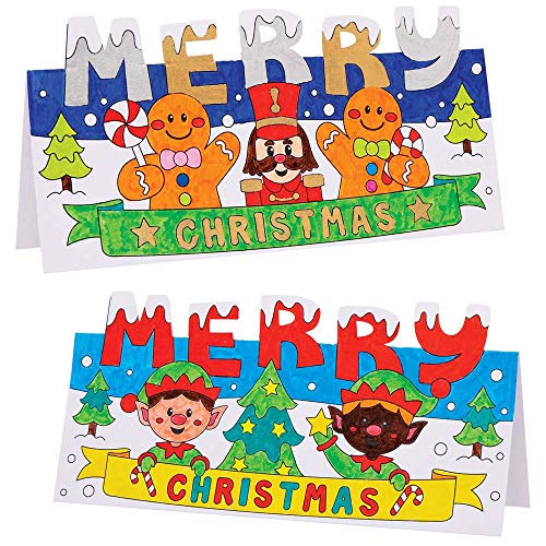 Baker Ross AX472 Cartoline Natalizie Da Colorare Per Bambini - Confezione Da 10, Cartoline Festive In Rilievo E Decorazioni Per Bambini