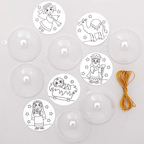 Incluso nel pacchetto: le palline misureranno 46 mm (1.8 pollici) di diametro al termine e sono realizzate in legno. Ogni confezione include Maria, Cammello, Angelo, Gesù, Pastore, Stalla e molto altro!