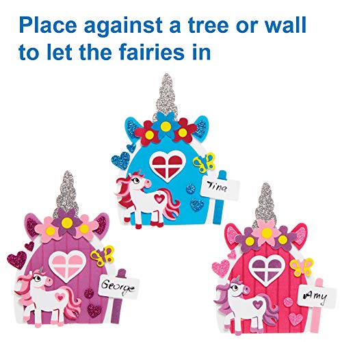 Baker Ross AX667 Kit Porte Fatate Unicorno in Legno - Confezione da 4, Arti e mestieri creativi per bambini, Storytelling e Creatività