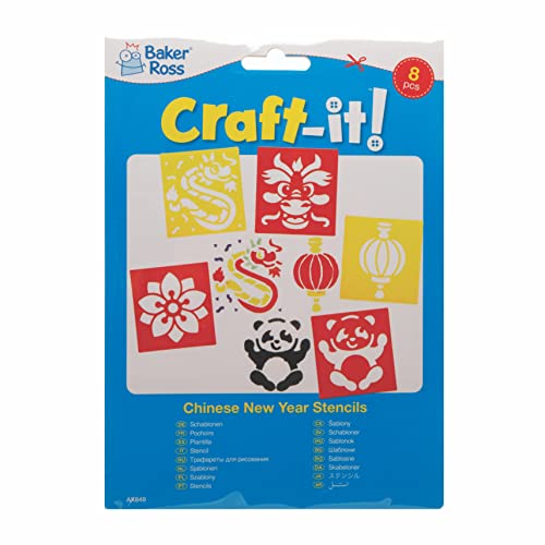 Baker Ross AX849 Stencil Capodanno Cinese - Confezione da 8, Guida alla Pittura per Bambini, Attività Artistiche e Artigianali