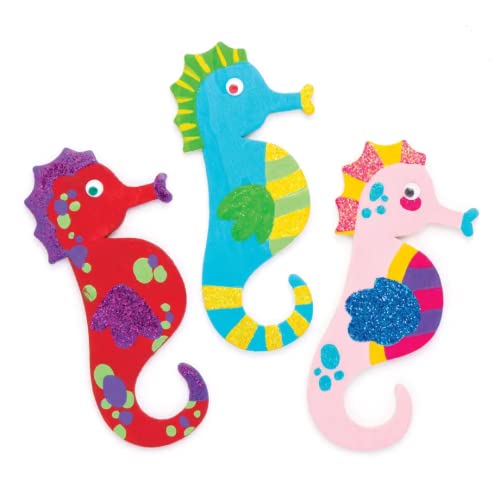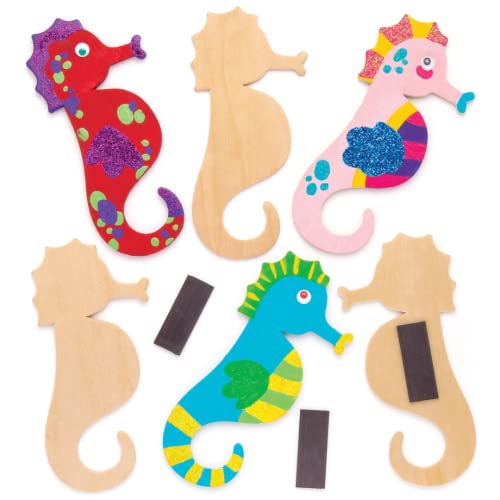 Baker Ross Calamite in legno a forma di cavalluccio marino (confezione da 10) - Creazione da dipingere a forma di cavalluccio marino per bambini, wood