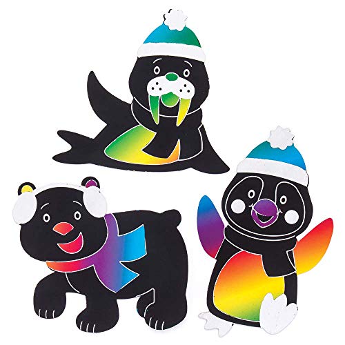 Baker Ross Calamite Scratch Art Amici Polari (Confezione da 10) per creazioni Fai da Te e Decorazioni Natalizie per Bambini