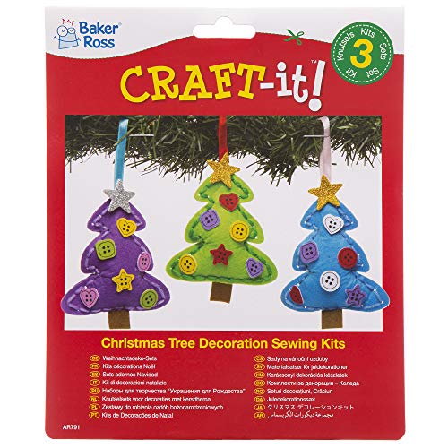 Baker Ross Kit Decorativi da Cucito Alberi di Natale. Adatto per attività Fai da Te per Bambini (Confezione da 3)