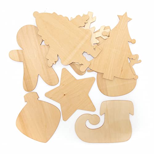 Baker Ross FC110 Forme di legno di Natale per bambini - Confezione da 10, Forme di legno verniciabili, Artigianato per bambini