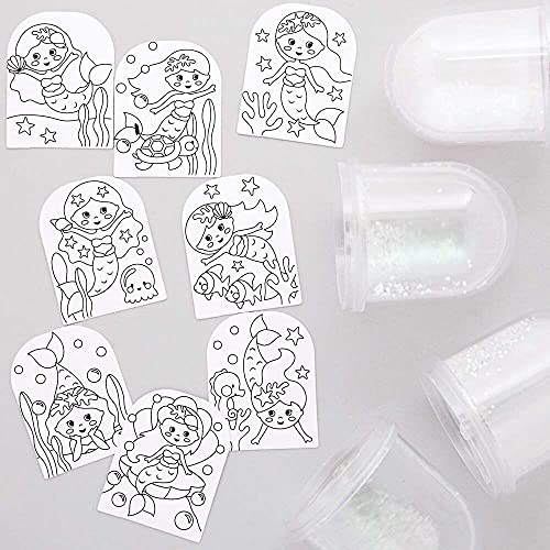Incluso nella confezione: Ogni sfera di neve a tema sirena viene fornita di 2 disegni da colorare con le nostre penne con punta in fibra o matite (non incluse). Glitter incluso - aggiungi solo acqua.Disegni assortiti. Altezza 5 cm (1.9 pollici)