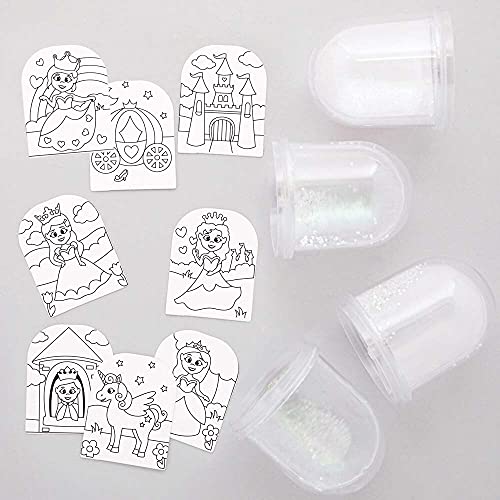 Baker Ross FE286 Sfere di Neve con gli Inserti a Tema Principesse da Colorare - Confezione da 4, Progetto Artistico per Bambini, Regali Fatti a Casa