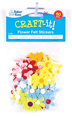 Baker Ross Fiori Autoadesivi in Feltro Ideali per Decorare e Personalizzare Bigliettini, Creazioni Fai Da Te e Collage (confezione da 60)