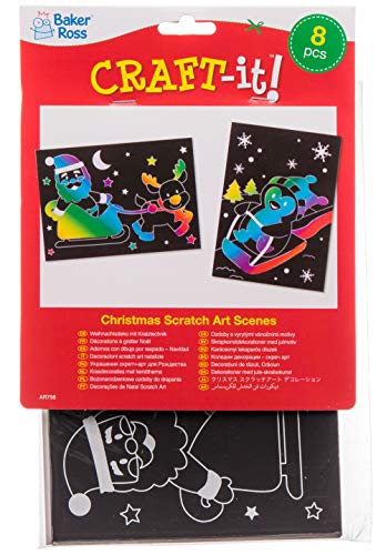 Baker Ross Immagini natalizie scratch art (confezione da 8) per creazioni e decorazioni natalizie per bambini, (AR756)
