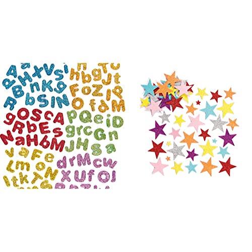 Baker Ross Lettere Autoadesive Glitterate in Gommapiuma (confezione da 850) & Stelle Adesive in Schiuma con Brillantini (confezione da 150)