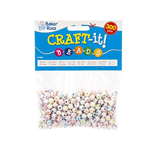 Baker Ross Perline Colorate con Faccine Buffe per Bambini Ideali per Confezionare Braccialetti, Collane e Gioielli Fai Da Te - Set Creativo per Bambini (Confezione da 300)