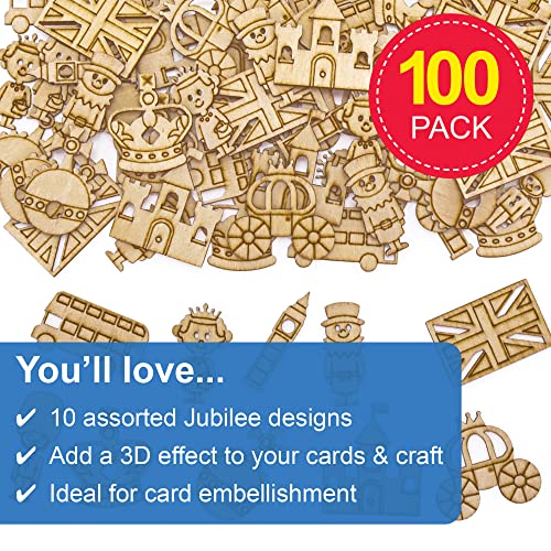Baker Ross PJ194 - Forme in legno Royal - Confezione da 100 pezzi in 10 disegni assortiti per bambini da decorare