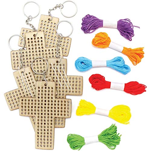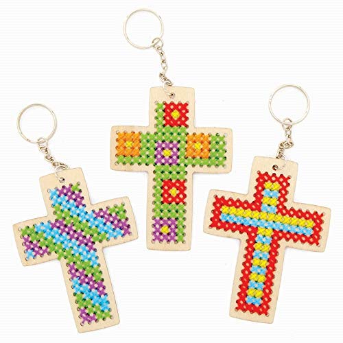 Baker Ross Portachiavi di Legno a Punto Croce - Confezione da 5, Artigianato Cristiano per Bambini (AX788)