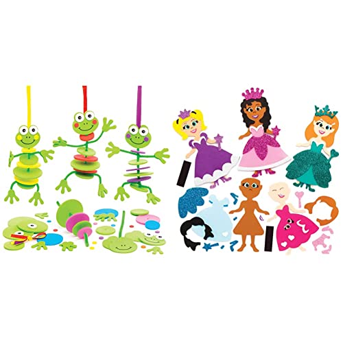 Baker Ross Kit Rana ad Anelli confezione da 6 - Ideale per arti e mestieri per bambini, decorazioni, ornamenti, ricordi & Kit Calamita Principessa Mix&Match, ideale per bambini