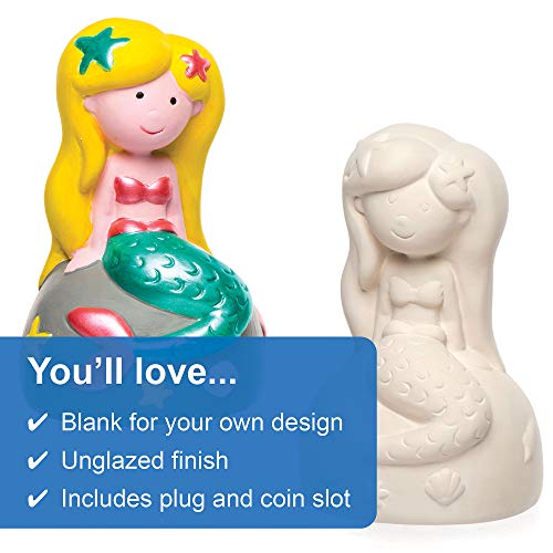 Baker Ross Sirene Salvadanaio in Ceramica per Bambini, da Dipingere e Decorare - Set per Creazioni in Porcellana per Bimbi (Scatola da 2)