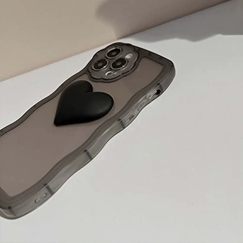 Bakicey Custodia per iPhone 14 Pro con collana di perle Aesthetic nero 3D cuore custodia protettiva TPU donne ragazze glitter antigraffio Case con graziosa catena per iPhone 14 Pro