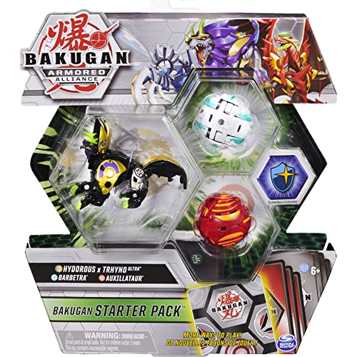 BAKUGAN Starter Pack 3-Pack, Fused Hydorous x Trhyno Ultra, Armored Alliance Collectible Action Figure