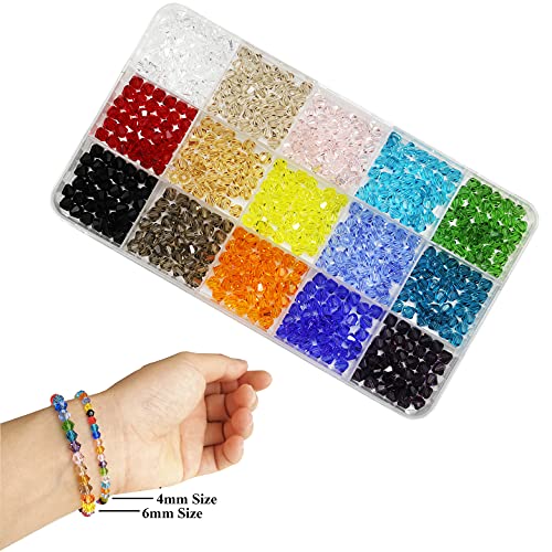 Bala&Fillic Bicone sfaccettato in cristallo da 6 mm, per gioielli fai da te, 15 colori in scatola (600 pezzi)
