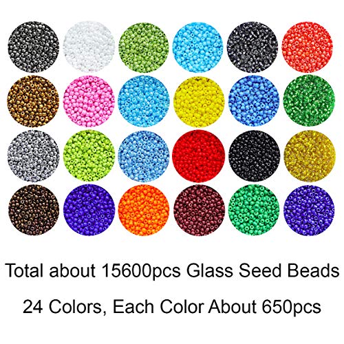 Bala & Fillic - Perline in vetro, dimensioni 11/0, circa 15600 pezzi, in scatola, 24 pezzi, multicolore assortiti