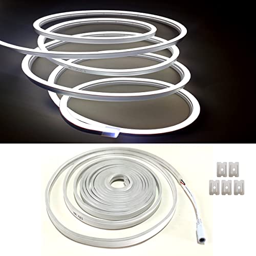 Balabaxer Striscia LED bianca al neon, 16,4 piedi/5 m, 12 V DC 600 SMD2835, tubo luminoso impermeabile per interni ed esterni, decorazione della casa (con alimentatore)