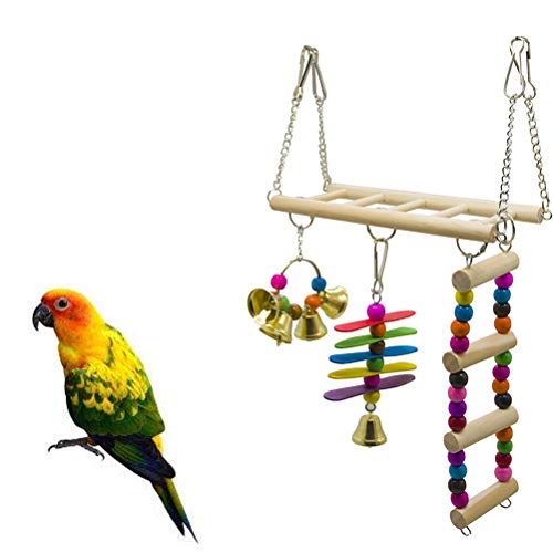 Balacoo Bird Swing Toys Amaca in Legno Scala da Arrampicata con Ciondolo Bell Parrot Accessori per cocorite e pappagallini