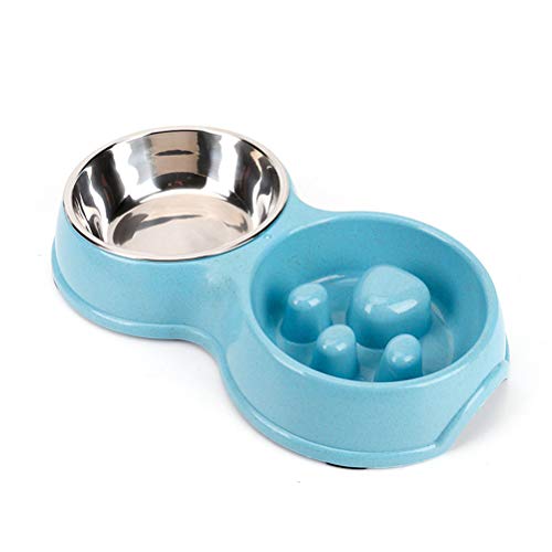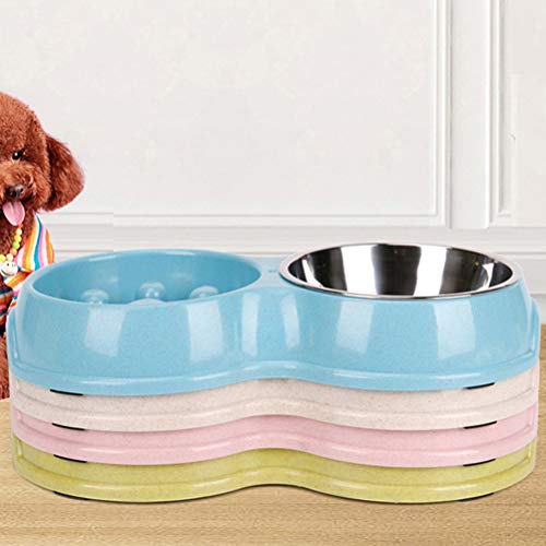 Balacoo Doppia Ciotole per Gatti Cani Ciotola Anti ingozzamento in Paglia di frumento Ciotola in Acciaio Inox con Pad Antiscivolo per l'alimentazione degli Animali Domestici