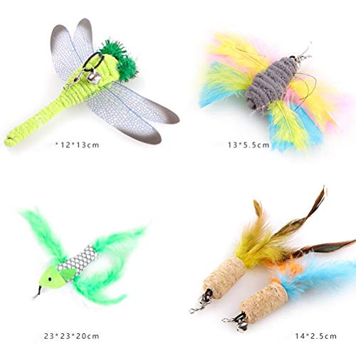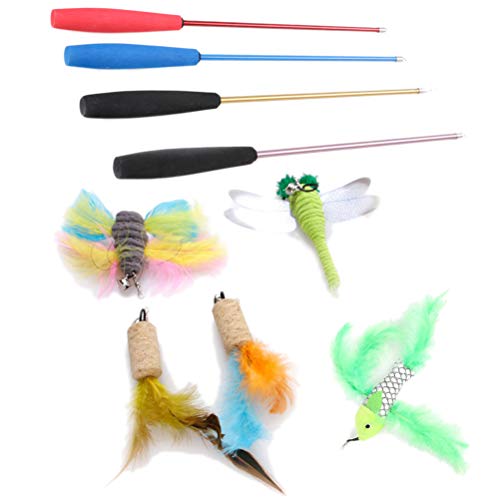 Balacoo Giocattoli interattivi con Occhielli di Piume di Gatto Bacchetta Retrattile con 6 Pezzi di Ricambio di Peluche Ricariche Giocattolo di addestramento per Cattura del Gatto per Gattino