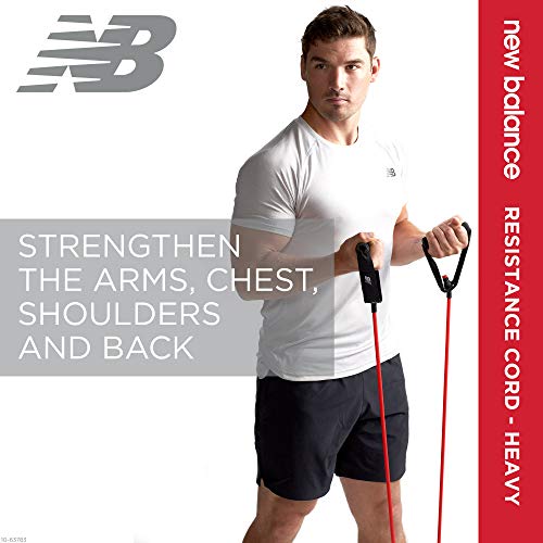 New Balance Resistance Band with Handle& Door Anchor Attachment Home Gym System - Exercise Fitness Workout Bands for Men, Women, Strength Training, Physical Therapy (Heavy, Red)