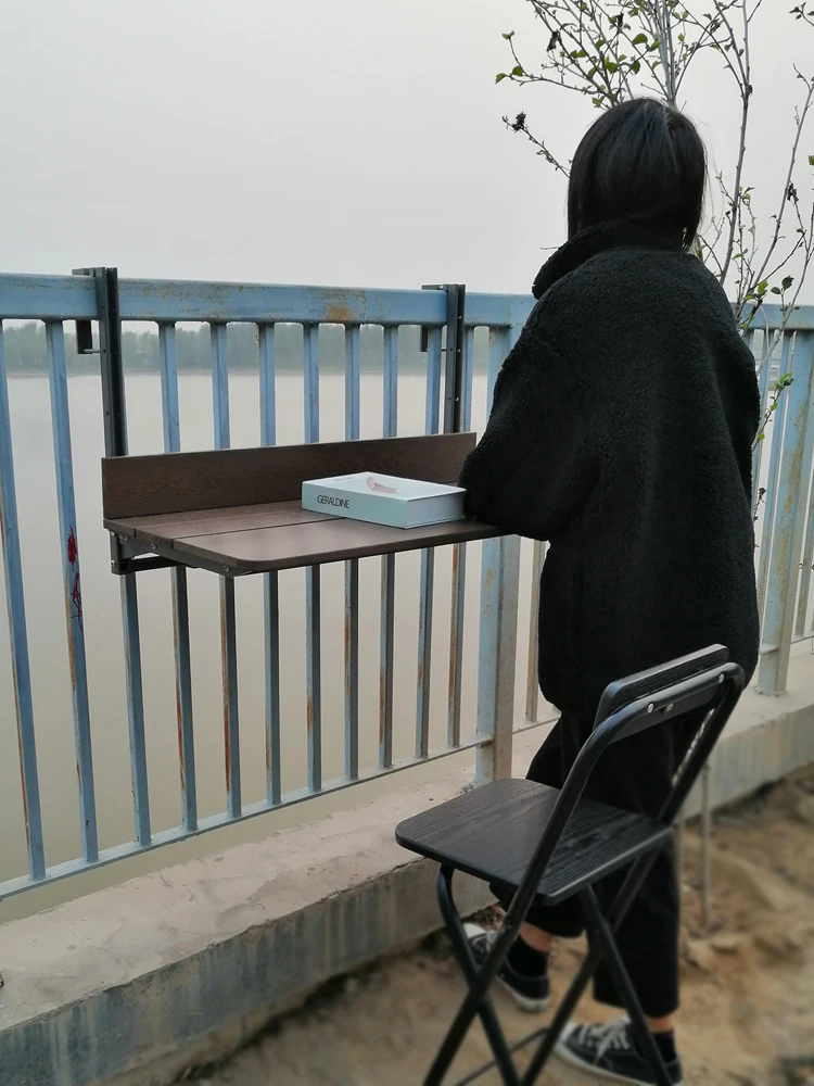 Balcony Railing Collapsible Hanging Table Household Bar Counter Outdoor Lifting Computer Desk Corrosion Resistant Easy To Clean