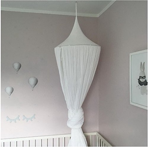 Baldacchino Bambini, Restbuy Baldacchino con Drappo in Cotone Lettino Zanzariera Baldacchino Per Bambino Princesa Tenda Stanza Dei Bambini Decorazione (Bianca)