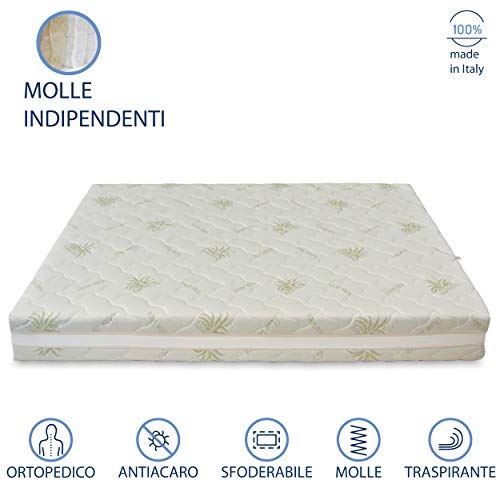 Baldiflex Emporio Materasso Matrimoniale Molle Insacchettate 700 Molle, Cuscino/i Saponetta Aloe Vera, 140x200cm Altezza 22 cm