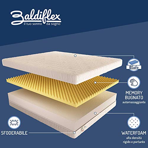 Baldiflex Emporio Materasso Memory Matrimoniale, Dream Soft Fodera Sfoderabile B.Safe, Trattamento Antivirale, 7 cm Memory, H 25 cm, Misura 160x200x25cm