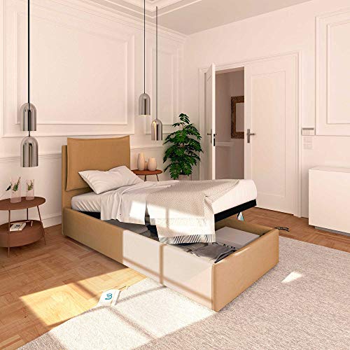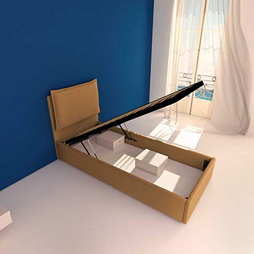 Baldiflex Letto Singolo con Contenitore Modello Licia in Ecopelle, Rete a Doghe, per Materassi Singoli 80x190 cm, Testiera Finemente Imbottita, colore Nature
