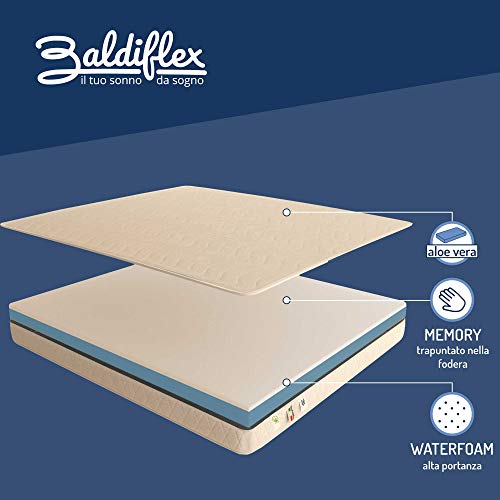 Baldiflex Materasso Una Piazza e Mezza Easy Aloe Memory 120 x 200 cm - Rivestimento Aloe Vera Proprieta' Naturali - Strato Memory 2 cm