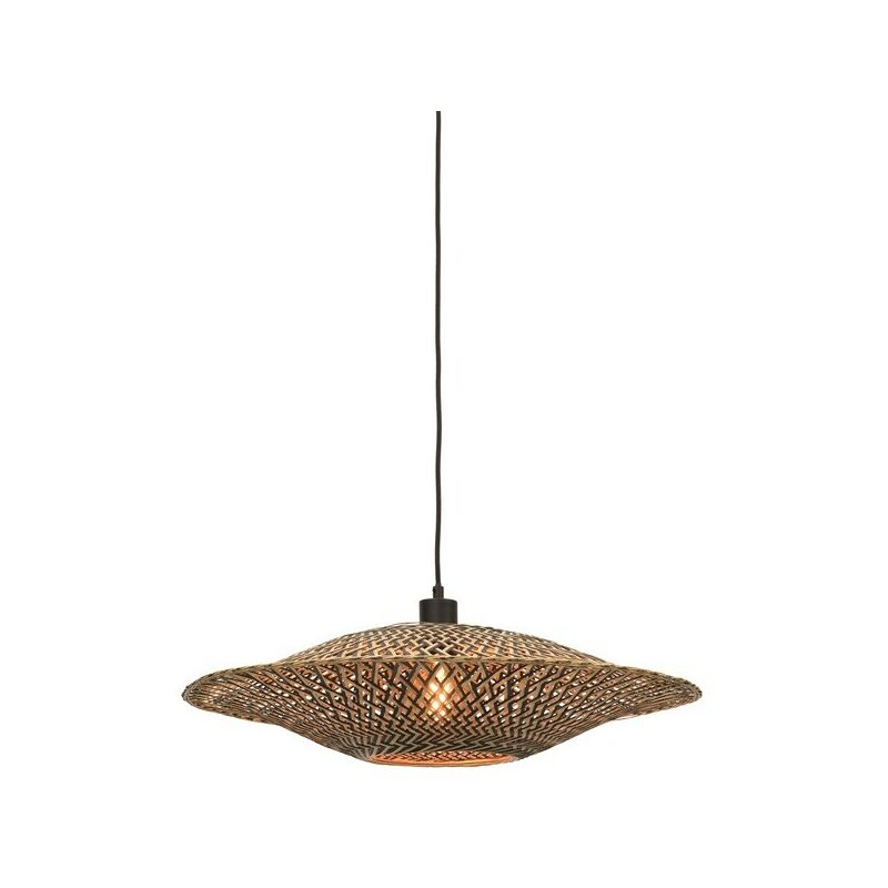 Uno stile bohémien per questa lampada Bali che mescola sapientemente materia naturale e design contemporaneo, in uno spirito etnico chic contemporaneo. Il paralume a doppia parete è realizzato a mano in Vietnam con canne di bambù bicolore intrecciate, naturale e nero. Ogni pezzo è una vera sfida tecnica la cui produzione richiede un'eccezionale maestria. Le doghe di bambù traforate proiettano ombre delicate sul soffitto. L'altezza è regolabile tramite cavo. GOOD&MOJO fornisce un'illuminazione eco-responsabile realizzata interamente con materiali sostenibili e/o riciclati 1 lampadina E27 max 40W NON INCLUSA IP20 Lunghezza cavo elettrico 200 cm Dimensioni: Diametro 60 cm, H 15 / 200 cm Dimensioni rosone: Diametro 11 cm, H 4 cm